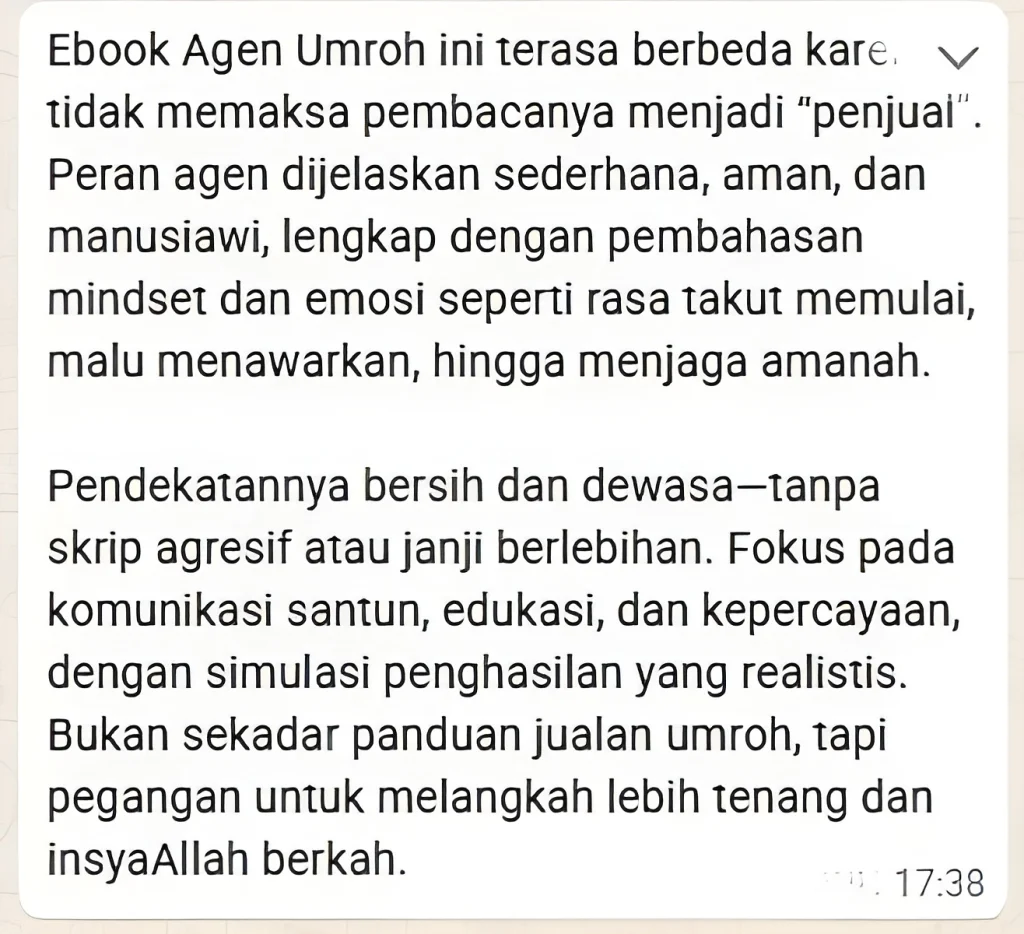 “Bukan sekadar panduan jualan umroh, tapi pegangan untuk melangkah lebih tenang dan insyaAllah berkah.”